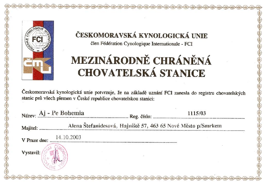 Chovatelská stanice: AJ-PE BOHEMIA