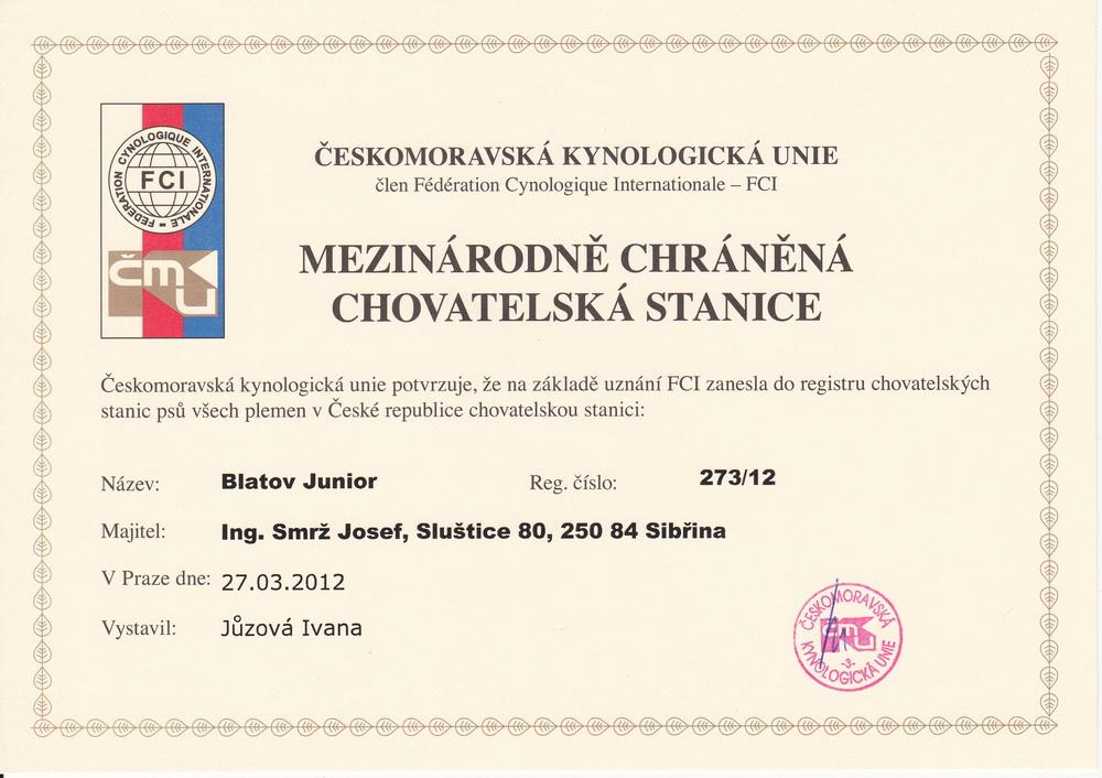 Chovatelská stanice: BLATOV JUNIOR
