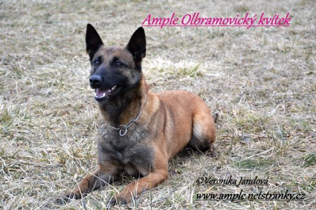 Ample Olbramovický kvítek : DKK A/A, DLK 0/0, DNA, Zkoušky:ZZO,ZOP,BH,IPO1,IPO2,IPO3, VZ Mládeže 2011 - 2. místo celkově, 1.místo IPO1, Mistrovství BO Slovenska IPO1 (2011) 5. místo.