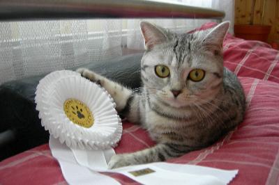 O nás:Tak, jako většina chovatelů i my jsme nezačínali rovnou s kočkami s rodokmenem, ale pomalu jsme se k chovu dostali přes pouliční a domácí Micky a Macíky. Odjakživa se nám kolem domu motalo nějaké mourovaté kotě, které se časem ztratilo nebo si jej nějaký dobrák odnesl domů. Protože jsme to vždy obrečeli, padlo rozhodnutí, že žádný další chlupáč už nebude. Až jednou přišel opravdový krasavec. Tedy, abych byla přesnější, někdo nám ho hodil do okapu. Po složité záchranné akci, jsme žalostně vyhublé koťátko dostali pomocí košíku dolů. Určitě už víte, jak to všechno dopadlo. Kotě tedy kocourka jsme nakrmili, odblešili a pojmenovali. A Vilík nás za to už 14 let miluje. Když přišel čas zařídit si svou domácnost, bylo jasné, že bez kočky být nemůže. Kocour Vilda zůstal u mé maminky a já si vybrala nádhernou stříbrnou britušku. Můj přítel byl tedy ze začátku proti. Jeho zásadní stanovisko; Fuj, smradlavá kočka! Kočka mi nesmí do bytu! bylo zlomeno hned první noc. Kočičí miminko, které jsme z výchovných důvodů nechali na chodbě, hrozně moc plakalo a tak po páníčkovo přímluvě skončilo u nás v posteli. Jak jinak! A od té doby je to přítelovo miláček, kterého mu samozřejmě moc přeju!