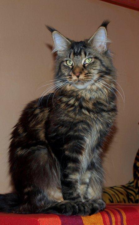 O plemeni:Mainskou mývalí kočku řadíme mezi největší plemena domestikovaných koček. Je to mimořádně krásná kočka, která je známá svou vysokou inteligencí a hravostí. V USA, odkud toto plemeno pochází, se nazývá Main Coon (coon, racoon = mýval), a to podle bohatě osrstěného chundelatého ocasu, který se podobá ocasu mývala. Díky své impozantní velikosti a přátelské povaze se této kočce často přezdívá "něžný obr".