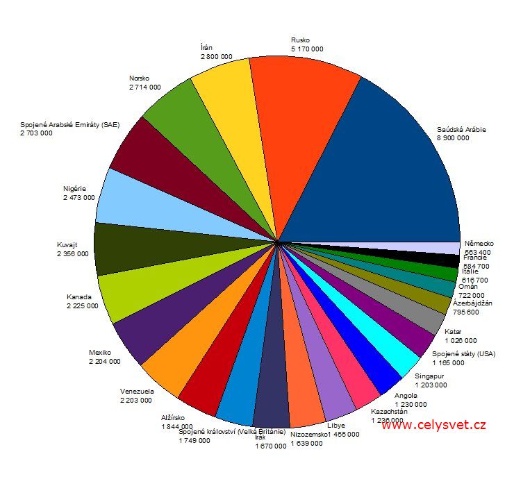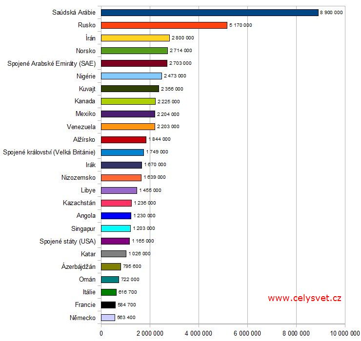 | 2. | Saúdská Arábie ::: | 8 900 000 barelů / den | Vývoj : |