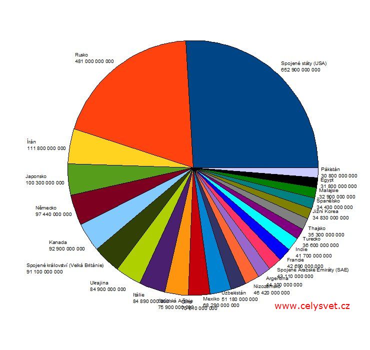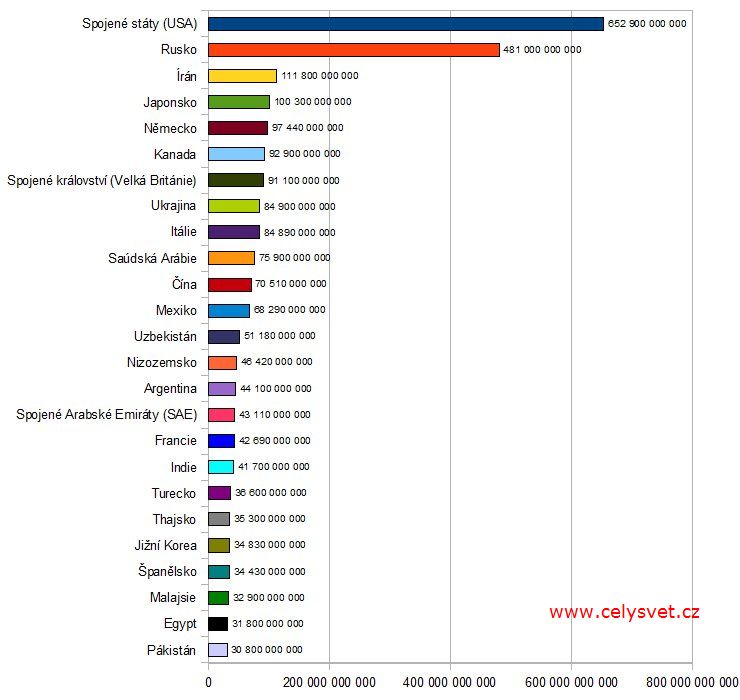 Zemní plyn - spotřeba. Pořadí států